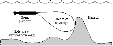 High-resolution sonars generally consist of an array of underwater sensors along with a beamformer to determine from which direction a sound is coming. The higher the resolution of a sonar system, the more accurately the location of an object can be determined. To achieve high resolution over a wide coverage area, a large number of beams may be formed. This figure illustrates a high resolution, multi-beam sonar with several narrow horizontal beams covering a wide horizontal sector.