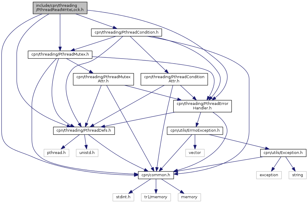 Include dependency graph for PthreadReadWriteLock.h: