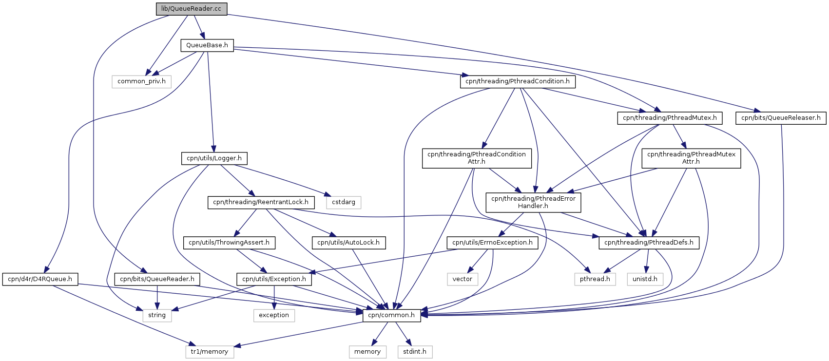 Include dependency graph for QueueReader.cc:Go to the source code of this file.