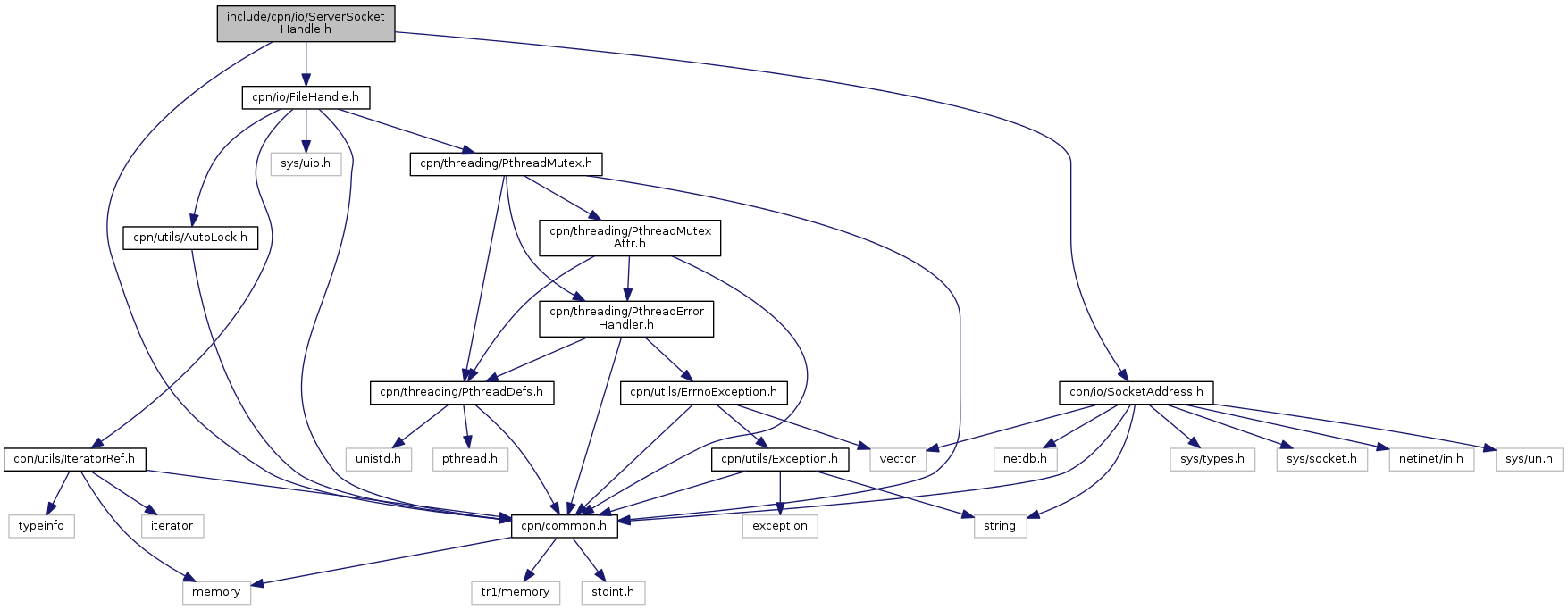 Include dependency graph for ServerSocketHandle.h: