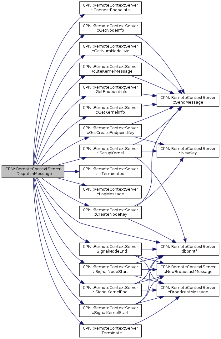 References ASSERT, ConnectEndpoints(), CreateNodeKey(), dbprintf(), GetCreateEndpointKey(), GetEndpointInfo(), GetKernelInfo(), GetNodeInfo(), GetNumNodeLive(), IsTerminated(), LogMessage(), CPN::RCTXMT_CONNECT_ENDPOINTS, CPN::RCTXMT_CREATE_NODE, CPN::RCTXMT_CREATE_NODE_KEY, CPN::RCTXMT_CREATE_QUEUE, CPN::RCTXMT_CREATE_READER, CPN::RCTXMT_CREATE_WRITER, CPN::RCTXMT_GET_CREATE_READER_KEY, CPN::RCTXMT_GET_CREATE_WRITER_KEY, CPN::RCTXMT_GET_KERNEL_INFO, CPN::RCTXMT_GET_NODE_INFO, CPN::RCTXMT_GET_NUM_NODE_LIVE, CPN::RCTXMT_GET_READER_INFO, CPN::RCTXMT_GET_WRITER_INFO, CPN::RCTXMT_LOG, CPN::RCTXMT_SETUP_KERNEL, CPN::RCTXMT_SIGNAL_KERNEL_END, CPN::RCTXMT_SIGNAL_KERNEL_START, CPN::RCTXMT_SIGNAL_NODE_END, CPN::RCTXMT_SIGNAL_NODE_START, CPN::RCTXMT_TERMINATE, RouteKernelMessage(), SetupKernel(), SignalKernelEnd(), SignalKernelStart(), SignalNodeEnd(), SignalNodeStart(), and Terminate().